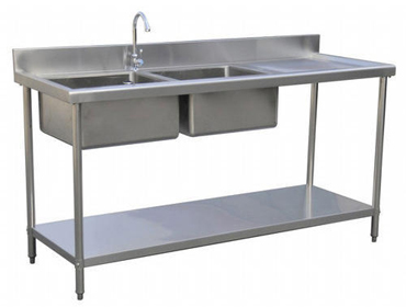 We are manufacturing and supplying the widest & most comprehensive range of Stainless Steel Two Sink Unit with Work Table & Shelve for Washing Counter Equipment
